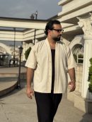 یقه و فرم کلی پیراهن به گونهای طراحی شده که قابلیت ست شدن با شلوار جین، پارچهای یا حتی شلوارهای اورسایز را داشته باشد.